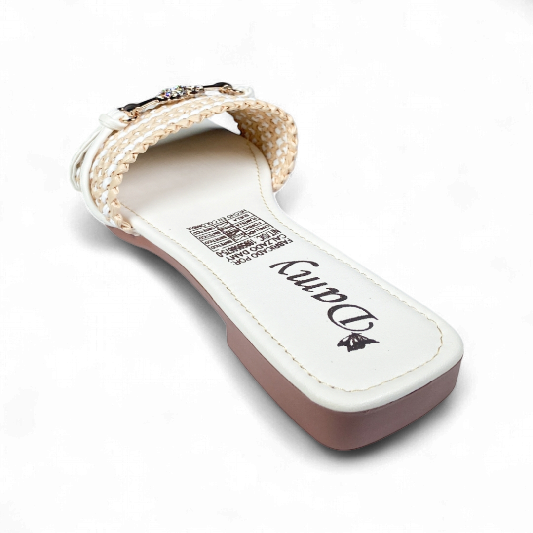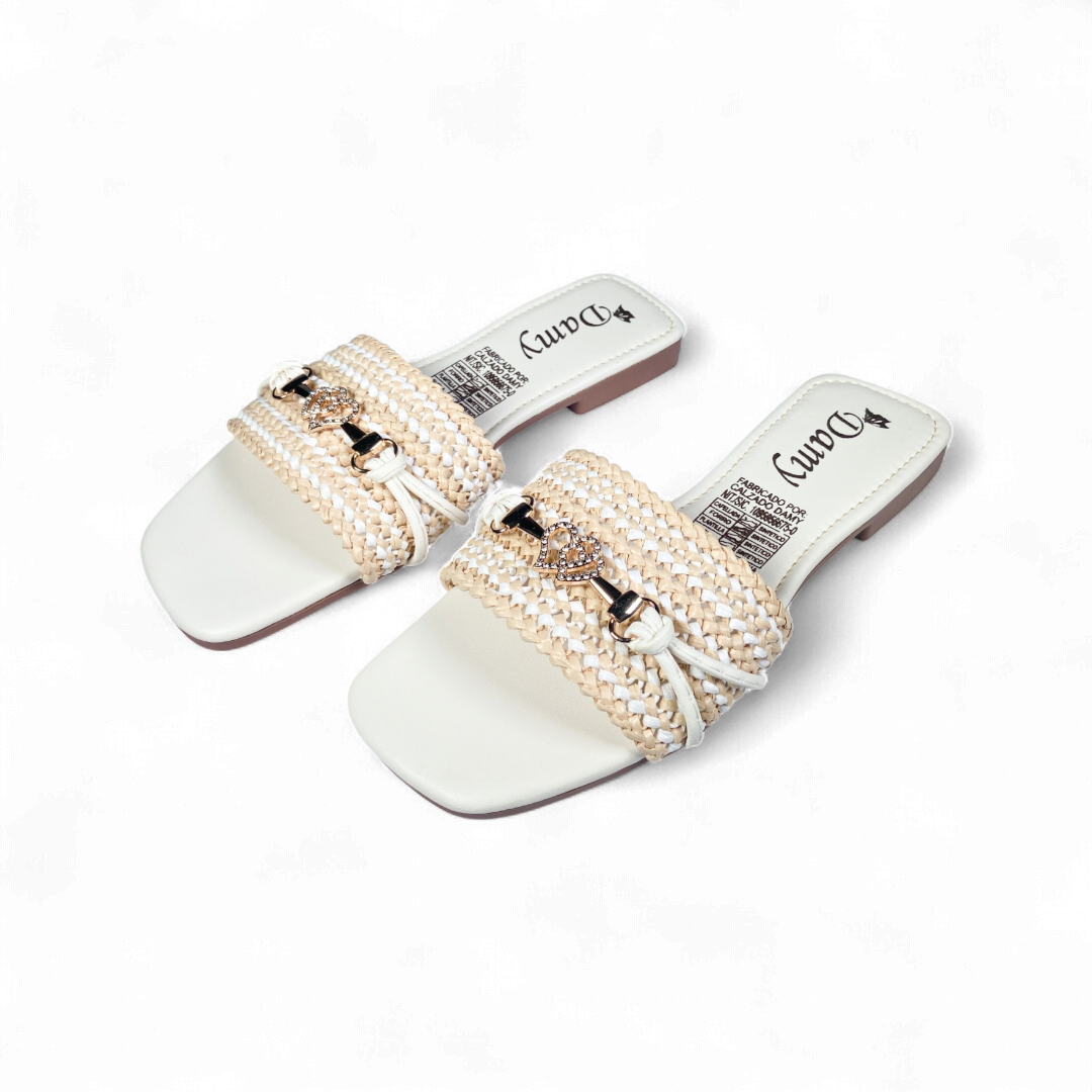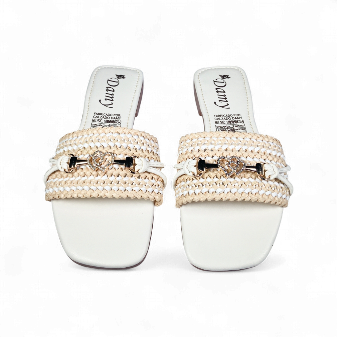 Póntelas y siente la brisa y la tranquilidad en cada paso. El diseño abierto y plano te ofrece máxima comodidad, mientras que los tonos blanco y beige hacen que sea la opción ideal para combinar con cualquier color de ropa. Es el calzado que te permite verte arreglada con cero esfuerzo.