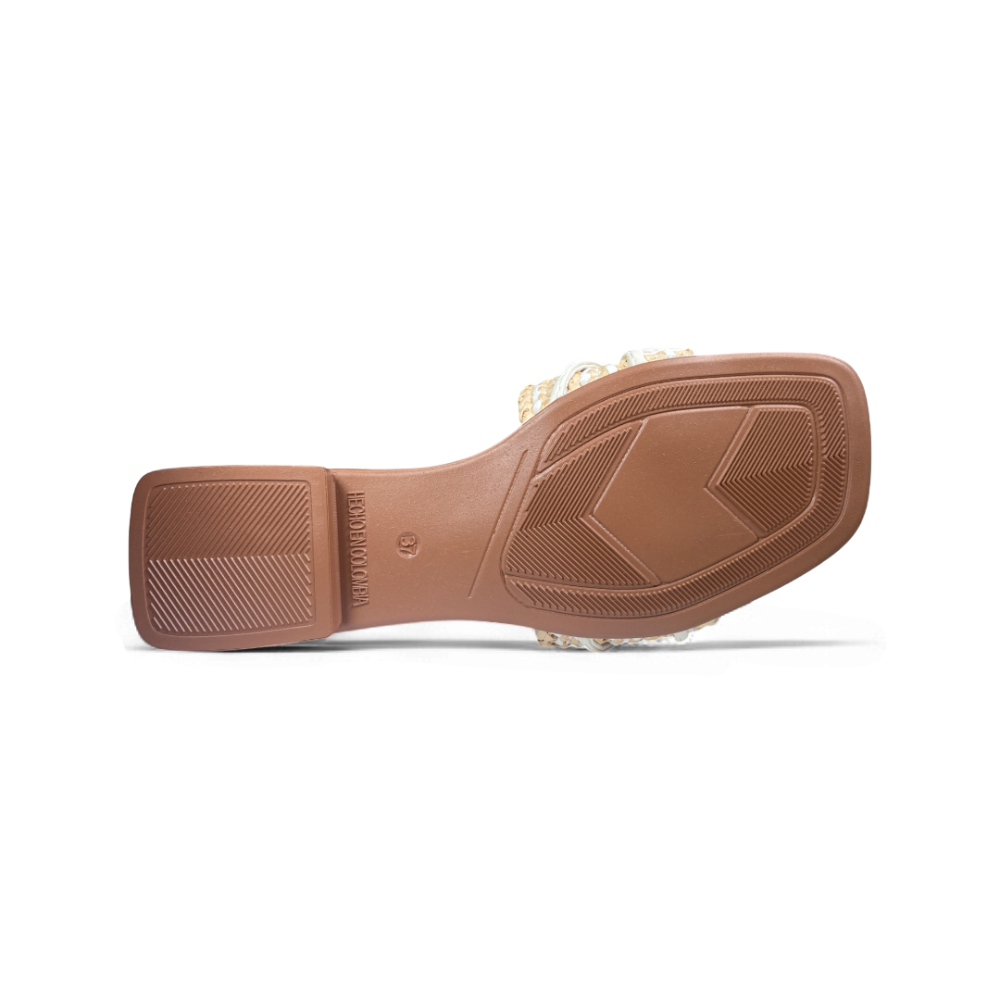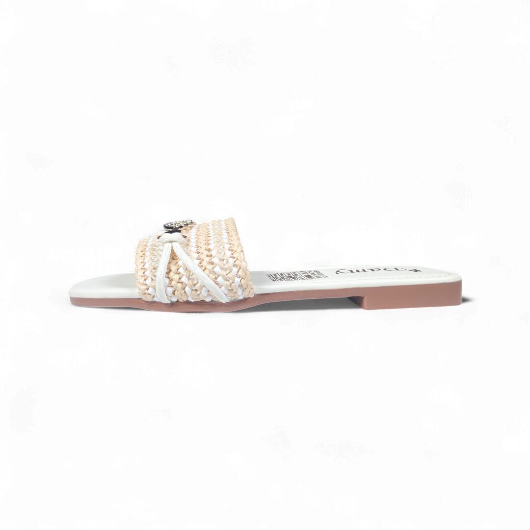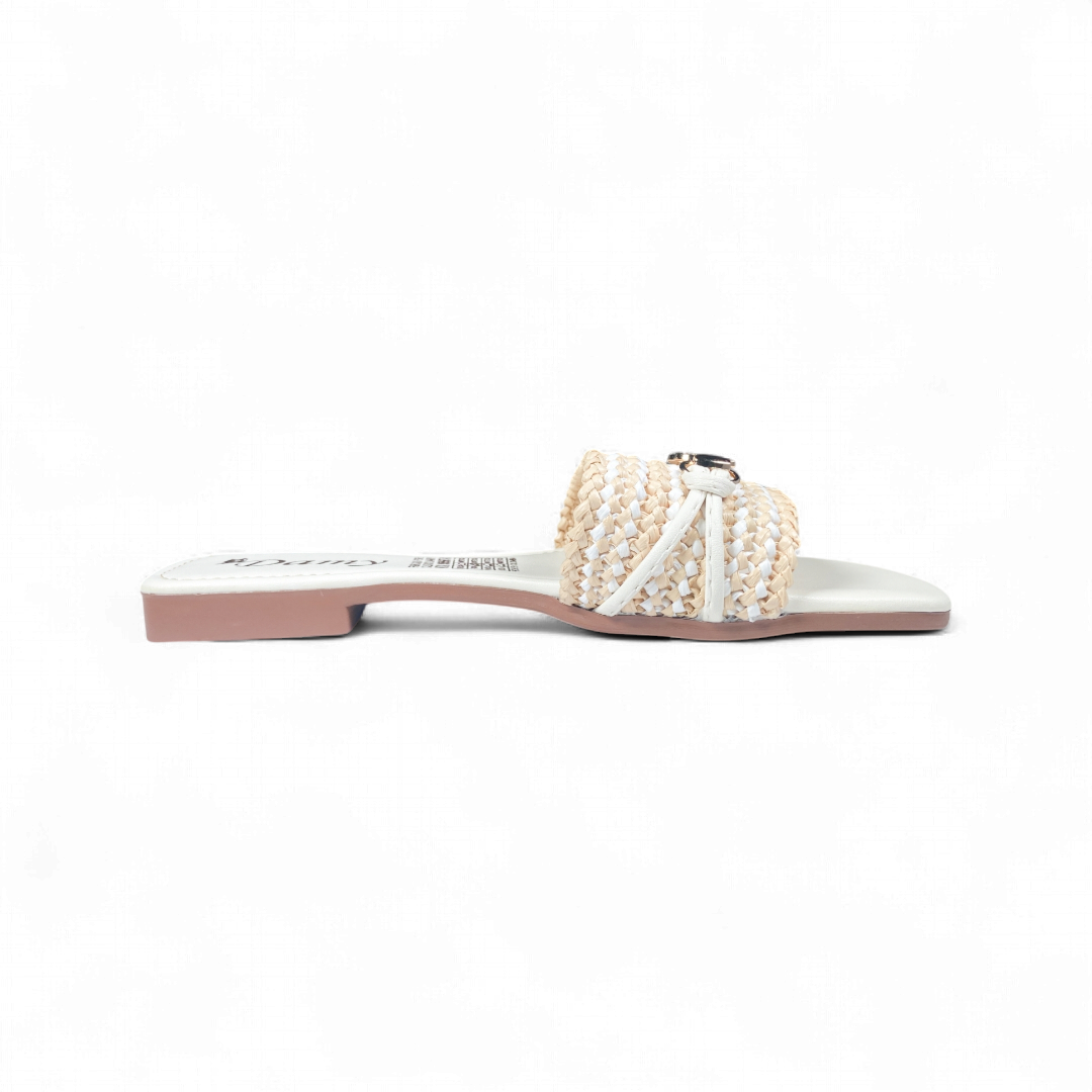 Póntelas y siente la brisa y la tranquilidad en cada paso. El diseño abierto y plano te ofrece máxima comodidad, mientras que los tonos blanco y beige hacen que sea la opción ideal para combinar con cualquier color de ropa. Es el calzado que te permite verte arreglada con cero esfuerzo.