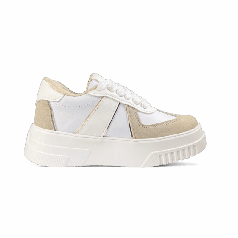 ¡La moda retro se encuentra con la delicadeza en un diseño inolvidable! Este calzado es la prueba de que se puede inyectar feminidad y encanto a cualquier estilo urbano. La combinación de blanco puro con el café tostado crea una paleta vintage, mientras que los delicados adornos alrededor de los cordones le dan un toque juvenil y juguetón.