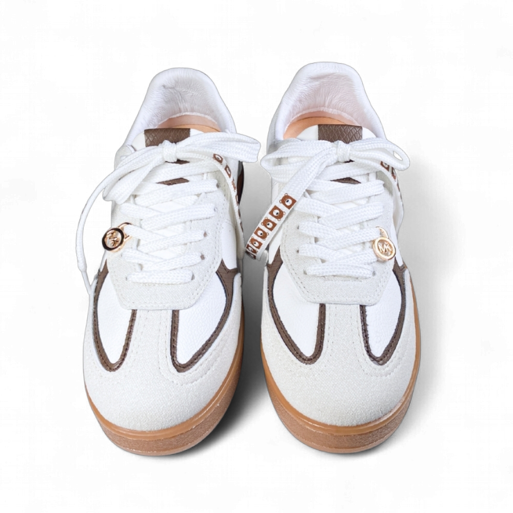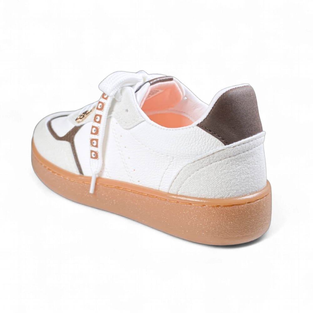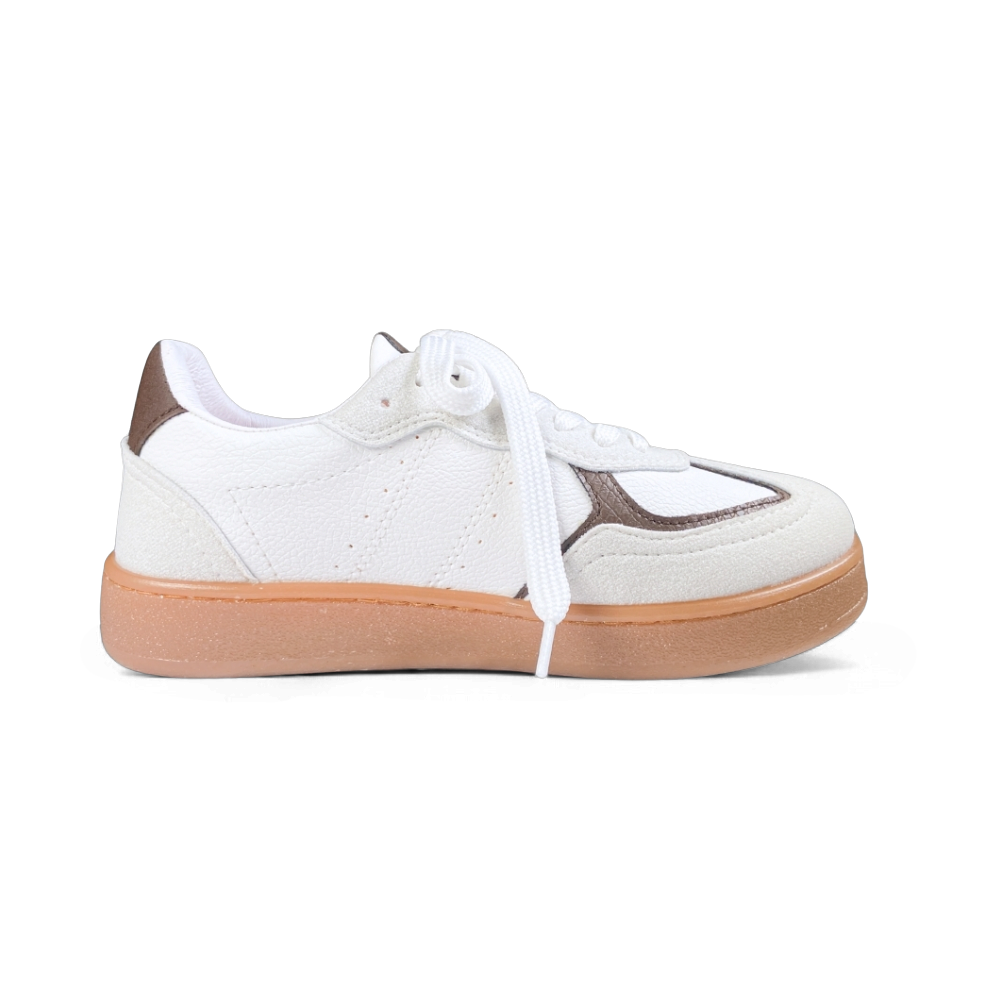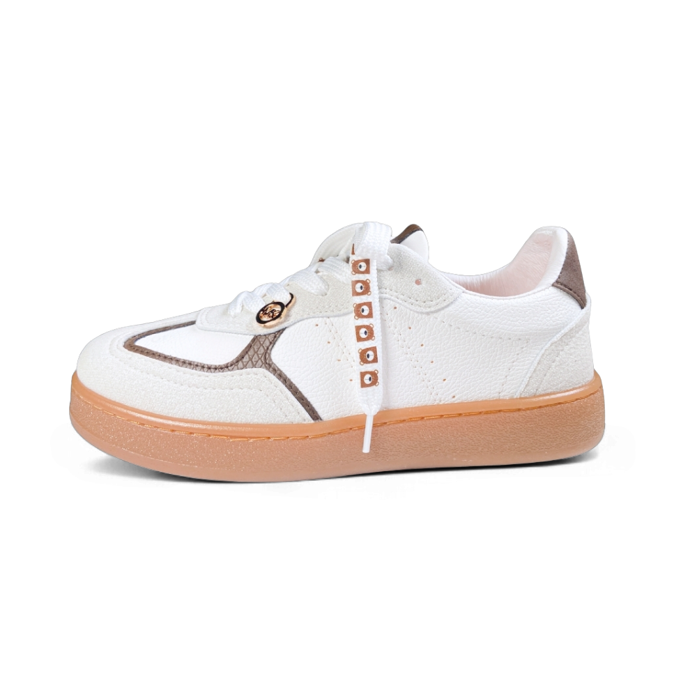 ¡La moda retro se encuentra con la delicadeza en un diseño inolvidable! Este calzado es la prueba de que se puede inyectar feminidad y encanto a cualquier estilo urbano. La combinación de blanco puro con el café tostado crea una paleta vintage, mientras que los delicados adornos alrededor de los cordones le dan un toque juvenil y juguetón.
